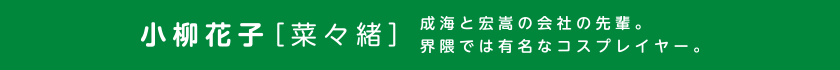 成海の同僚。ヲタクとは程遠いリア充女子。宏嵩に好意を寄せる。